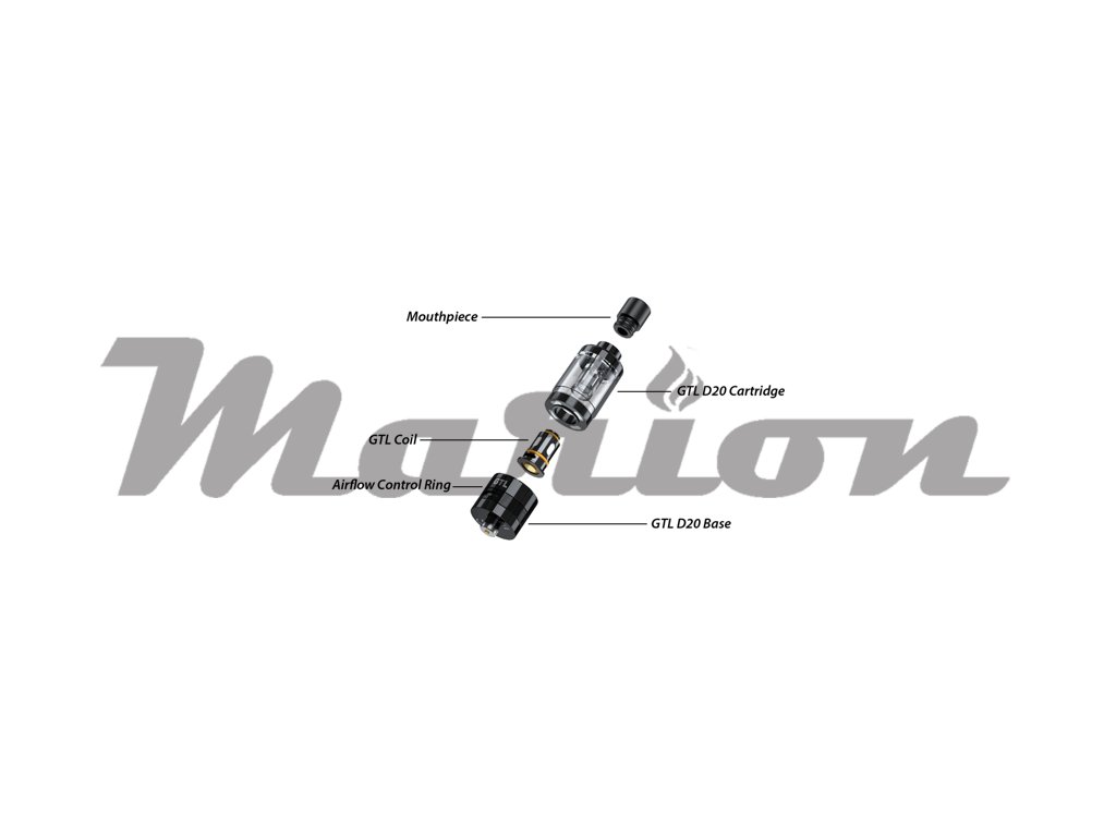 Ve spodní části clearomizéru se nachází praktický systém regulace airflow, otáčením regulačního kroužku si snadno a rychle nastavíte potřebnou tuhost potahu. V základní verzi se jedná o MTL clearomizér. Je totiž kompatibilní se žhavícími tělísky Eleaf GTL, přičemž v balení na vás čekají hned dvě tělíska z této série v černém provedení. Jedná se o tělíska s odpory 0,8 ohm a 1,2 ohm. Samostatně si pak můžete k modelu zakoupit také tělísko s odporem 0,4 ohm pro rozšíření funkčnosti na utaženější RDL vaping. Eleaf GTL D20 Tank se skvěle hodí zejména pro začátečníky a uživatele, kteří si chtějí vyzkoušet krásy MTL vapingu a poohlíží se po základním a jednoduchém clearomizéru.