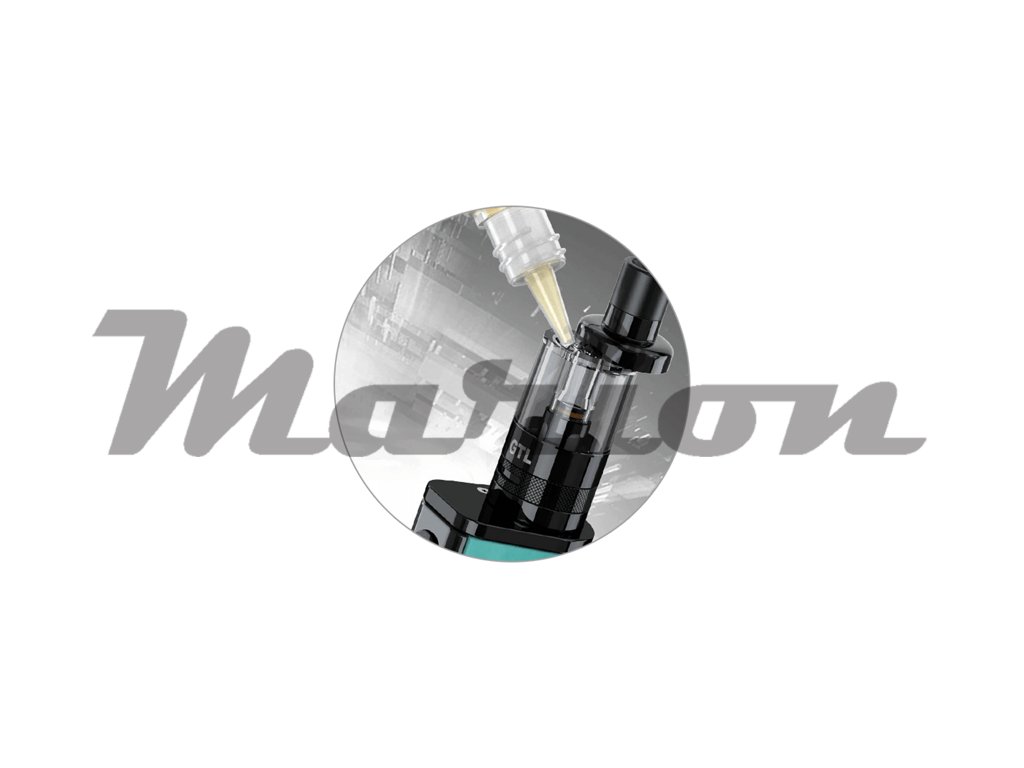 Cartridge, která je nasazena na samotnou 510 kovovou základnu atomizéru pomocí magnetických úchytů, disponuje základním objemem 3 ml. V případě nutnosti doplnění pak postačí jednoduše vysunout vrchní uzávěr do strany a začít plnit. Celý proces plnění zabere jen okamžik a následně se budete moci opět uchýlit k vapování.