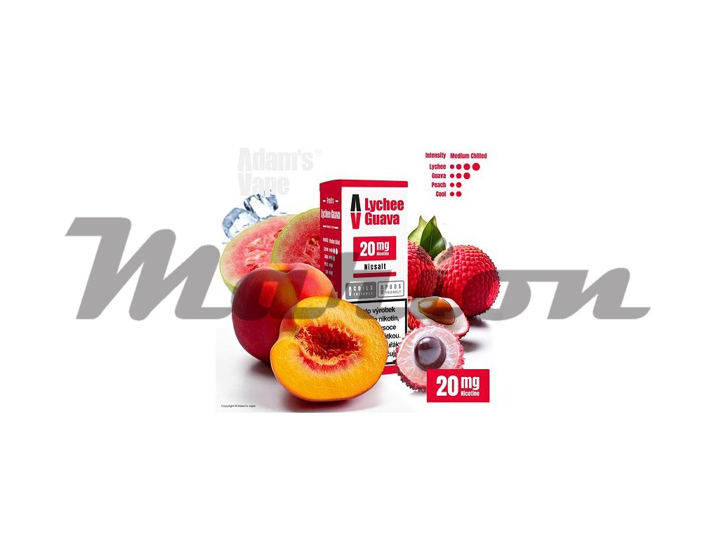 Adam's Vape SALTS Lychee Guava (Liči, guava a broskev) 10ml intenzita nikotinu 20mg tabáková nálepka Kolek Q