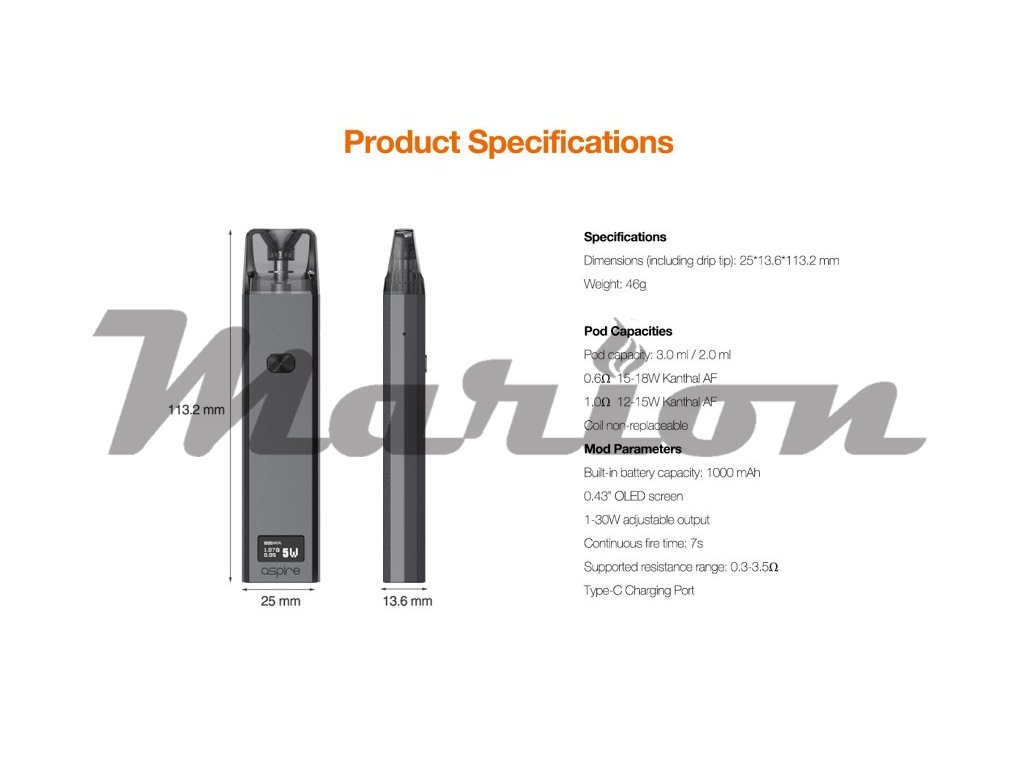 Elegantní Pod elektronická cigareta vyrobená z hliníkové slitiny. Velmi vhodná pro náplně s nikotinovou solí a podporou RDTL i MTL potahování, OLED displej, automatický i manuální aktivace potahu, výkon až 30W, baterie 1000mAh, USB-C nabíjení, plnitelné Pod Cartridge Aspire Favostix.