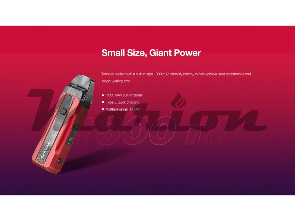 Výkonná Pod elektronická cigareta s kapacitou baterie 1300mAh, výkonem až 30W a displejem o velikosti 0,69 ”. Tělo vyrobeno ze zinkové slitiny. Vhodná pro MTL i RDTL styl vapování. Automatická i manuální aktivace baterie. USB-C nabíjení.