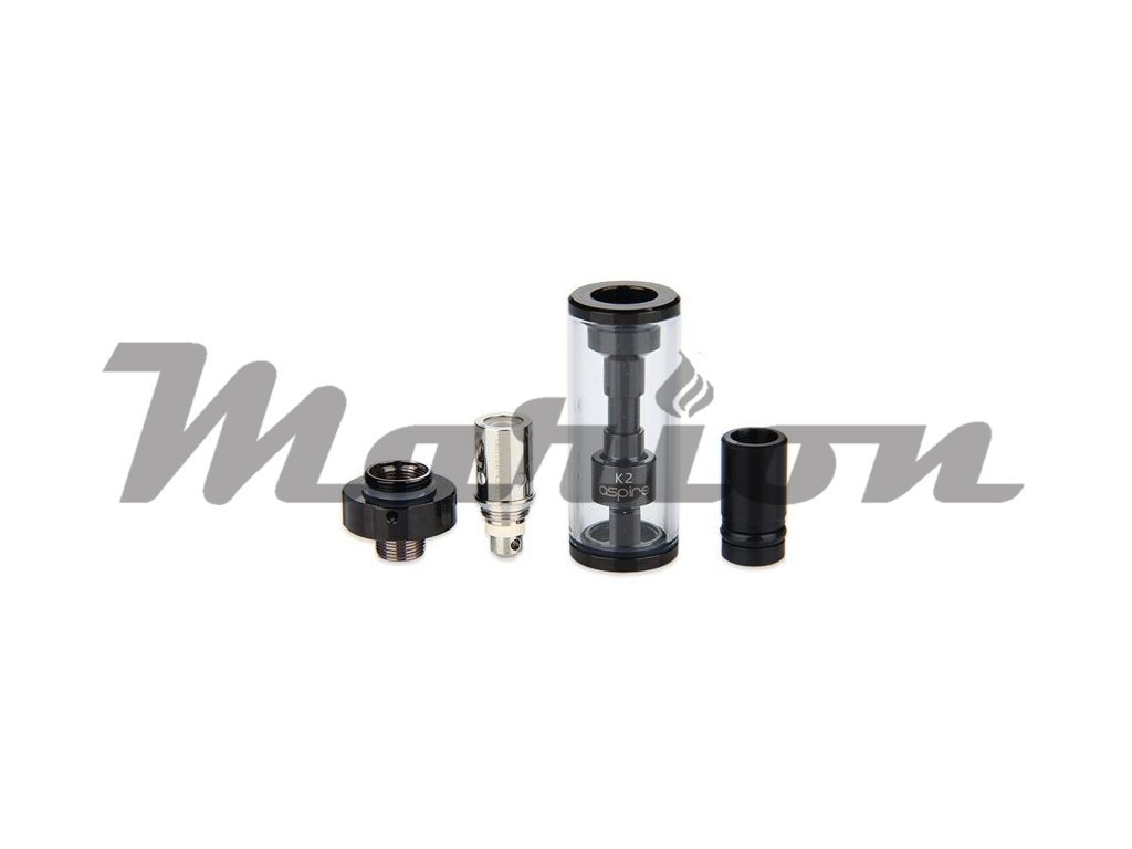 Po úspěšném modelu Aspire K1 přichází další verze clearomizéru s označením K2. Clearomizér Aspire K2 využívá stejná žhavící tělíska jako CE5 / CE5-S. Jedná se o klasická tělíska pro nepřímé potahování (stejně jako u klasických tabákových cigaret), která jsou k dispozici s odporem 1,6ohm, 1,8ohm a 2,1ohm.