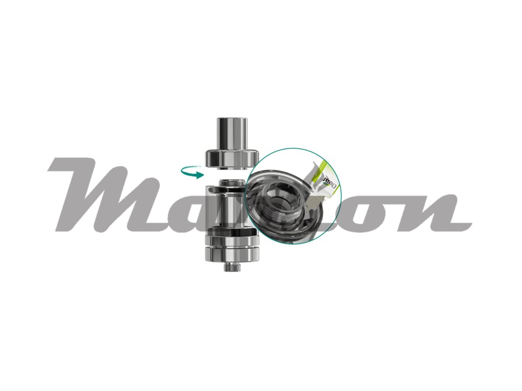Rychlé a pohodlné plnění zajišťuje vrchní uzávěr. Po jeho odšroubování lze e-liquid plnit přímo z lahvičky s e-liquidem.