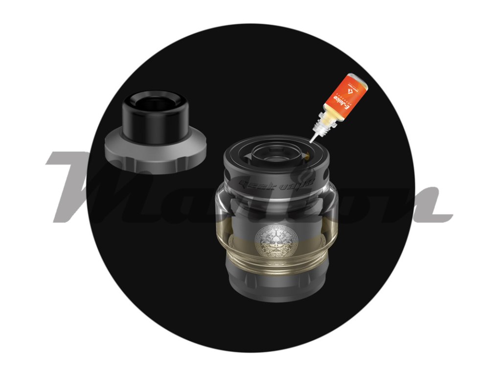 Potřebujete si do atomizéru doplnit e-liquid? Žádný problém. Jednoduchým pohybem pootočte vrchním uzávěrem a odejměte ho. Poté můžete začít plnit do jednoho ze dvou podlouhlých otvorů. Celý tank naplníte během pár vteřin. Díky velkým otvorům pro plnění si poradí i se širšími kapátky, nebo pipetami.