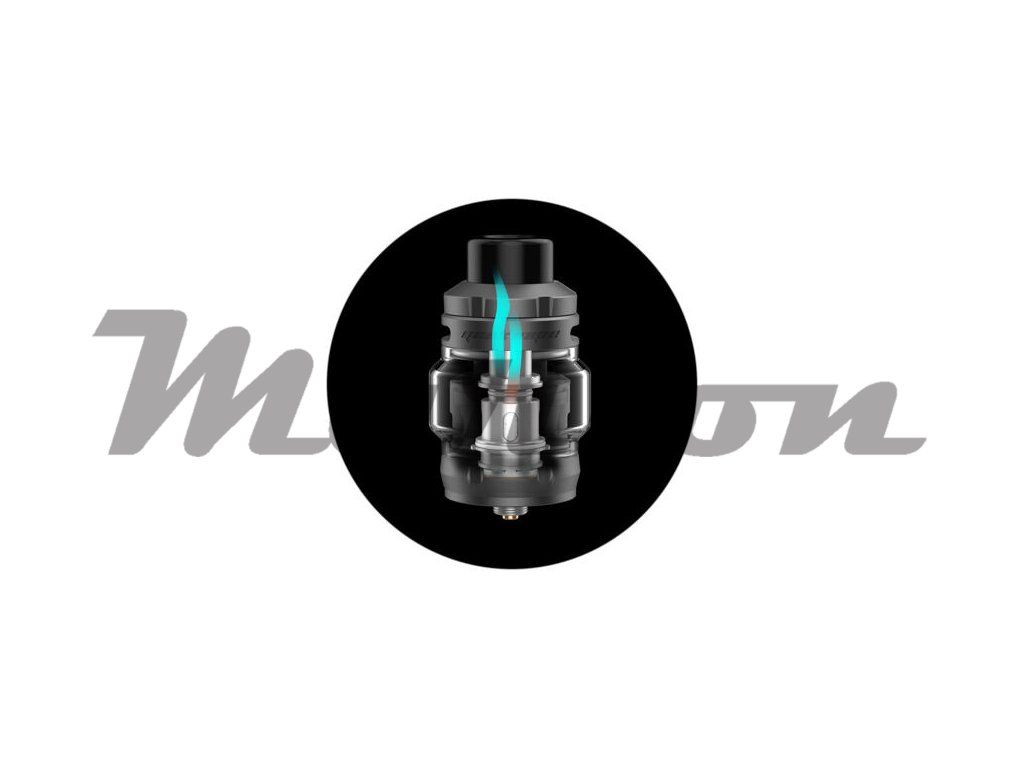 Stejně jako u předchozích atomizérů z řady Zeus, najdete i zde inovativní a praktický systém vrchního přísunu vzduchu. Systém je plně regulovatelný a umožňuje plnou kontrolu nad vzduchem vstupujícím do atomizéru. Díky této cirkulaci bude vždy dosaženo mimořádné chuti a zároveň skvělé produkce páry.