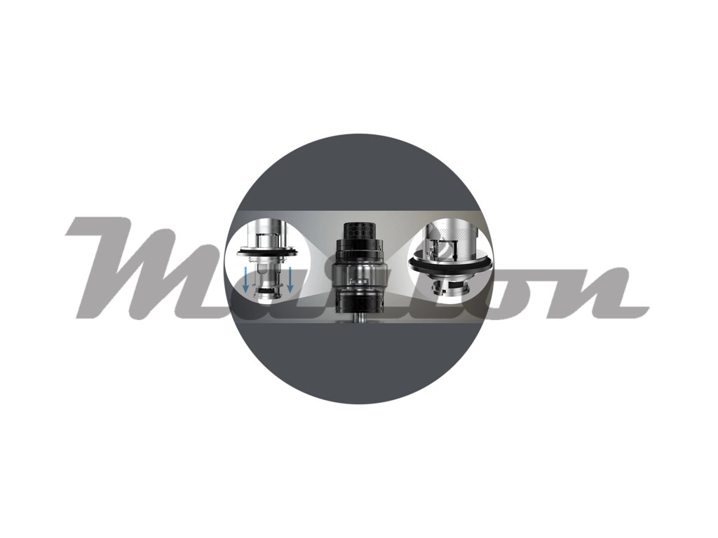 Nespornou výhodou atomizéru Z Force Tank je přítomnost inovativního uzavíratelného mechanismu, který uzavře přísun e-liquidu v případě výměny žhavícího tělíska. Během výměny tak můžete jednoduše ponechat naplněný tank a po vysunutí tělíska se uzavře příchod juice flow. Poté jednoduše nacvaknete novou hlavu do atomizéru a můžete opět začít vapovat.