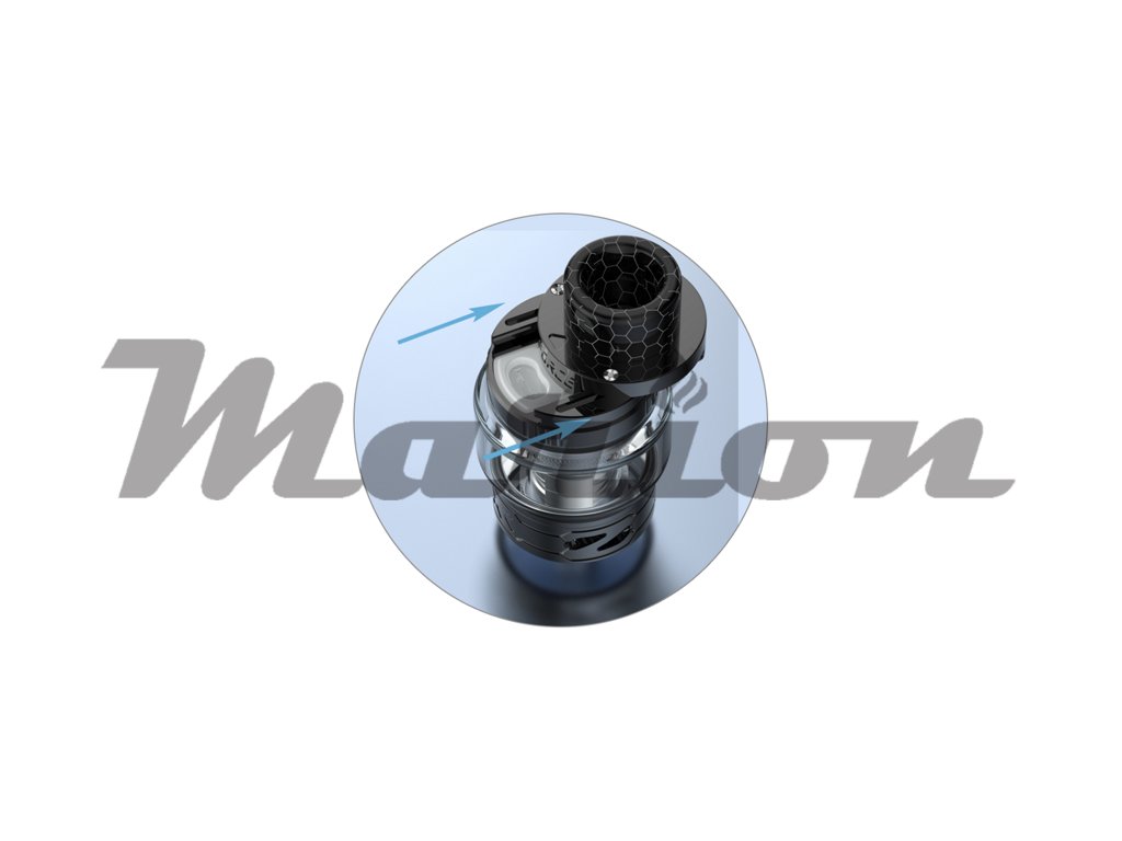 Atomizér Z Force Tank je opatřen jednoduchým systémem vrchního plnění. Jedním prstem tak vysunete uzávěr do strany a můžete začít plnit. Samotný otvor pro plnění je doplněn o silikonovou membránu, která zabraňuje možnému úniku e-liquidu během plnění. E-liquid do tanku doplníte během několika málo vteřin.