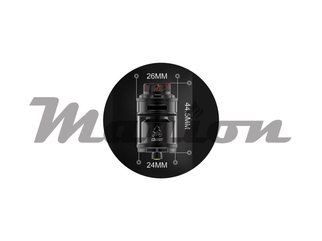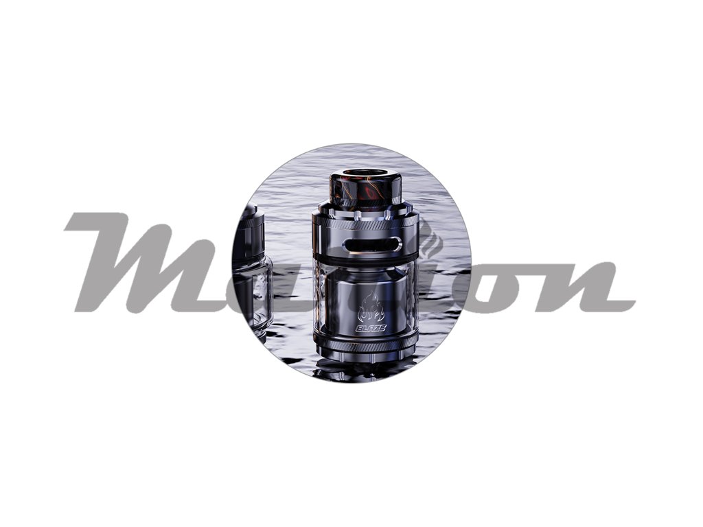 Základní objem tanku činí 2 ml, tuto kapacitu si však budete moci pohodlně navýšit až na 5,5 ml osazením většího pyrexového těla z balení. Mimo obrovskou kapacitu disponuje atomizér také oblíbeným systémem vrchního doplňování. V těle se potom nachází inovativní "WOW" základna pro instalaci dvou spirálek souběžně. Tato základna zároveň nabídne unikátní systém přívodu vzduchu s názvem 270° Honeycomb. Vzduch je přiváděn řadou menších otvorů pod spirálky, odkud poté proudí směrem nahoru do komory. Výsledná chuť je doslova ohromující. Samotnou tuhost potahu si poté můžete ještě regulovat pomocí vrchního systému airflow. THC Blaze RTA je ve všech směrech promyšlený DL atomizér, se kterým se nebudete ani na vteřinu nudit. Zaručeně splní požadavky i těch nejnáročnějších příznivců přímého potahování do plic.
