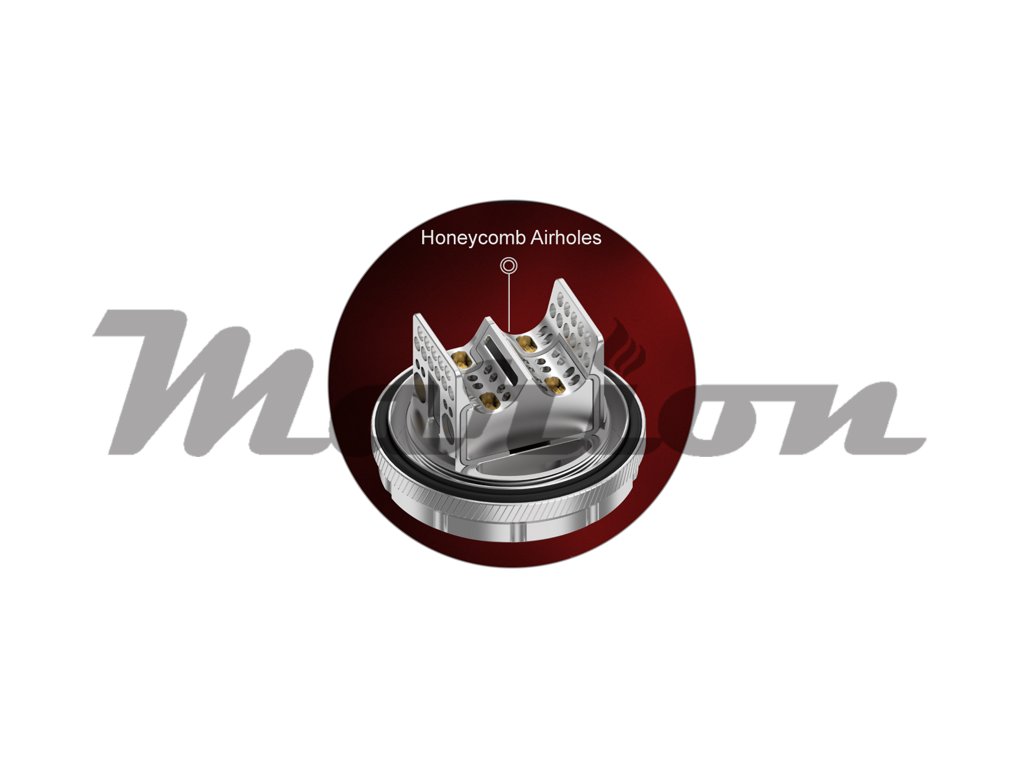 Poté, co vzduch vstoupí do atomizéru skrz vrchní airflow systém, proudí směrem k základně. Do základny je přiváděn ze spodní části, odkud také ofukuje samotné spirálky. Revoluční systém 270° Honeycomb, kterým je opatřena samotná základna, je skutečně dechberoucí. Atomizér si naprosto hravě poradí s kterýmkoliv e-liquidem. Ať už preferujete jednosložkové náplně, nebo složité a komplexní ovocné a dezertové směsi, všechny chutě vykreslí naprosto dokonale.