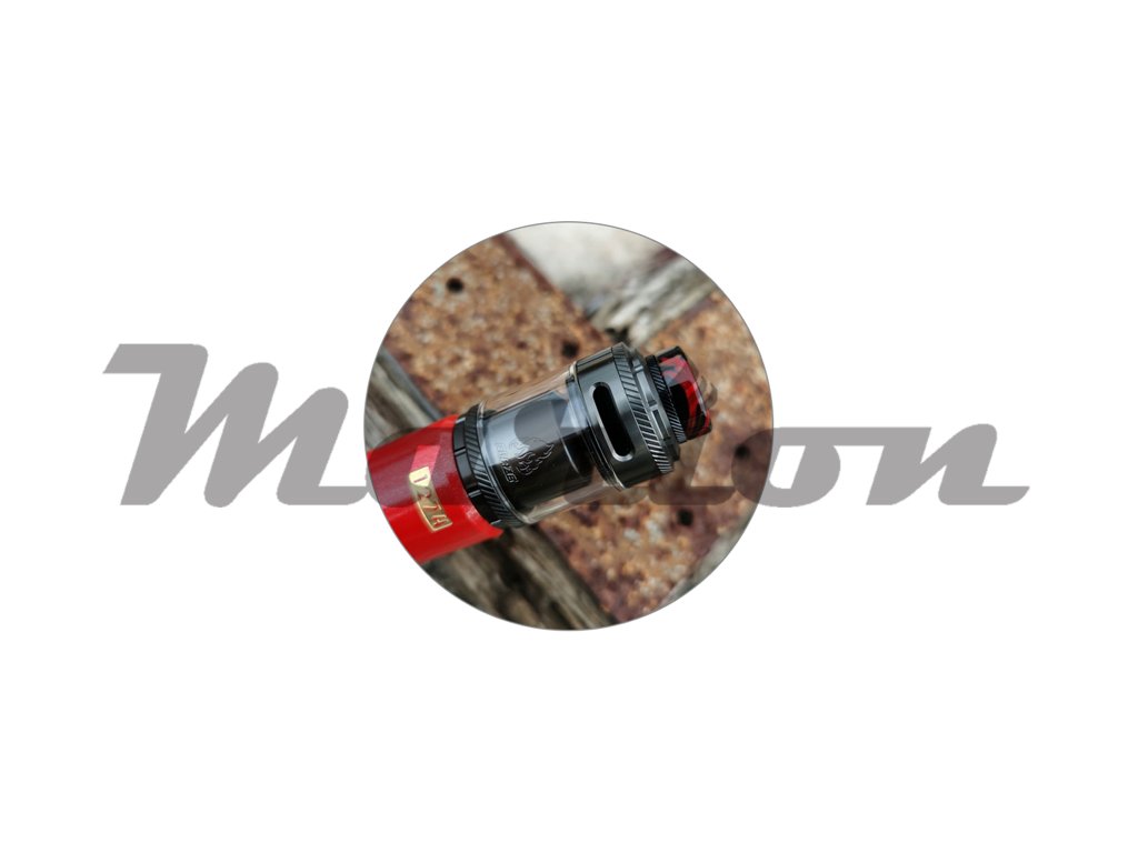 Zajímavým prvkem atomizéru je potom systém airflow. Ten je umístěn ve vrchní části, kde se nachází široký otvor pro vstup vzduchu do atomizéru. Na otvoru najdete praktický regulační kroužek pro pohodlnou regulaci přívodu vzduchu a ovlivnění výsledné tuhosti potahu. Díky vrchnímu přívodu vzduchu navíc vzduch uvnitř atomizéru cirkuluje mnohem efektivněji a výsledná chuť vás doslova dokáže srazit do kolen.