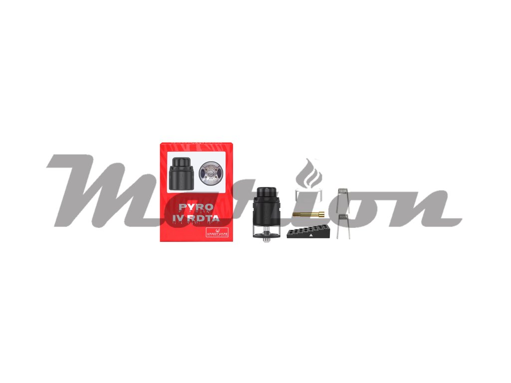 Čtvrtá generace jednoho z nejpopulárnějších RDTA atomizérů na trhu je konečně tady. Populární atomizér Vandy Vape Pyro ve verzi V4 RDTA přináší větší kapacitu tanku a upgradovaný systém airflow pro ještě lepší chuťový požitek při každém potahu. Jedná se o decentně zpracovaný atomizér s minimalistickou kovovou konstrukcí těla. To nabídne délku pouhých 37,45 mm bez náustku a průměr 25,5 mm. Bude si tak skvěle rozumět s drtivou většinou modů a baterií na trhu. Tuto kompatibilitu navíc umocní závit typu 510 ve spodní části s odnímatelným centrpinem, který budete moci nahradit za dutý BF pin pro squonkování. Objem celého atomizéru činí krásných 5 ml, doplníte tak do něj potřebné množství e-liquidu pro dlouhé hodiny intenzivního potahování. V případě nutnosti pak můžete tank kdykoliv opětovně doplnit pomocí bočního systému plnění.
