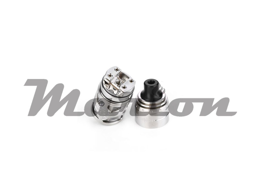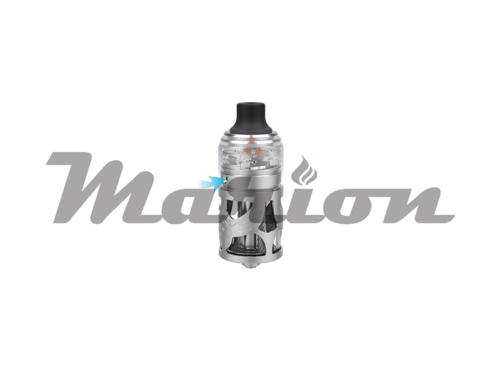 S velice specifickým rozložením a designem se potom setkáte ve vnitřní části atomizéru. Jedná se o tzv. top coiler, jehož základna je umístěna ve vrchní části atomizéru nad samotným tankem na e-liquid. Do této základny je možné instalovat celkem jednu spirálku dle vlastního výběru. Základnu tvoří dva sloupky a výsledná instalace a uchycení jsou nesmírně jednoduché. Hravě si s ní poradí také začátečníci v oblasti DIY vapingu. Tato vrchní základna je následně zásobena e-liquidem pomocí speciálních nerezových lanek na způsob meshe. Vaše vata tak bude mít neustále dostatek e-liquidu díky kvalitní přenositelnosti e-liquidu pomocí těchto kvalitních lanek. Samotný tank ve spodní části potom nabídne obrovský objem. Můžete do něj doplnit až 5 ml e-liquidu a užívat si dlouhé hodiny pohodového vapování bez nutnosti plnění. Plnící otvor pro doplnění tanku najdete v boční části atomizéru. Otvor si poradí také s průměrově širšími kapátky, které můžete znát například z oblíbené série lahviček Chubby Gorilla.