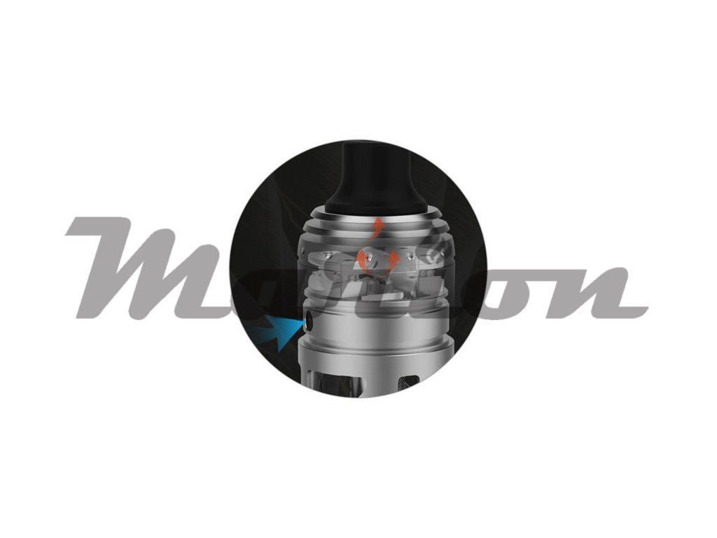 Přímo pod spirálkou se nachází otvor pro vstup vzduchu do atomizéru. Díky umístění pod spirálkou je spirálka ofukována efektivně a vždy tak dosáhnete perfektní chuti. Jelikož se jedná o MTL atomizér, připravil si výrobce široké možnosti nastavení tohoto přívodního otvoru. V balení tak najdete redukční sadu tvořenou šesti šroubky s různými průměry otvoru pro zvolení optimální tuhosti potahu. Na výběr budete mít průměry 0,9 mm, 1,2 mm, 1,4 mm, 1,8 mm a dva širší průměry 2,1 mm a 2,5 mm.