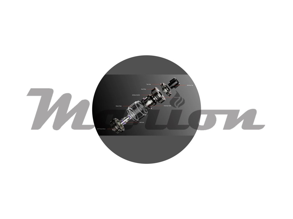 Ve spodní části atomizéru se nachází tradiční závit typu 510 s pozlaceným centrpinem pro perfektní vodivost a kompatibilitu s drtivou většinou modů a baterií na dnešním trhu. Atomizér nabídne také pečlivě zkonstruovanou spodní základnu nad závitem pro perfektní izolaci tepla a pro co nejrychlejší ochlazování potřebných částí atomizéru pro správné a bezpečné fungování.