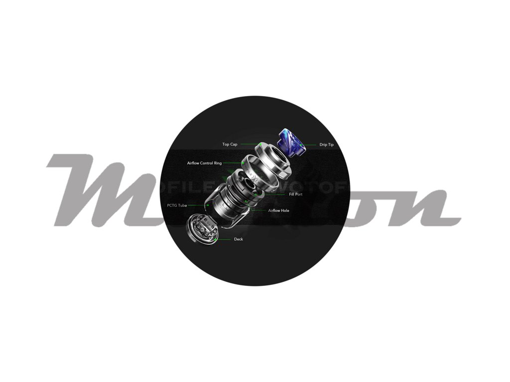 Základní objem tanku při použití standardního PCTG těla činí 5 ml. Jedná se o obrovskou kapacitu vhodnou pro dlouhé hodiny intenzivního vapování. Tuto velkou kapacitu tanku si však budete moci ještě pohodlně navýšit až na neuvěřitelných 8 ml. Postačí jen atomizér osadit vybouleným pyrexovým sklem z balení a rázem máte objem téměř dvakrát větší.