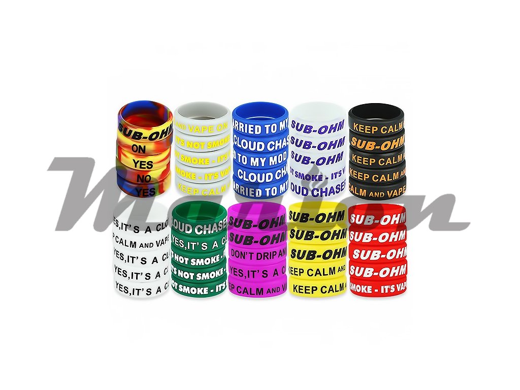 Designový silikonový kroužek je vhodný nejen jako designový doplněk Vaší elektronické cigarety, nebo gripu. Poslouží zároveň jako funkční ochrana Vašeho skleněného Clearomizeru, například při pádu na zem. Tento kroužek je určený pro baterie, případně Clearomizery s průměrem 23 mm. Potisk kroužků je opatřen náhodným textem, který se nemusí vždy shodovat s uvedenou fotografií.