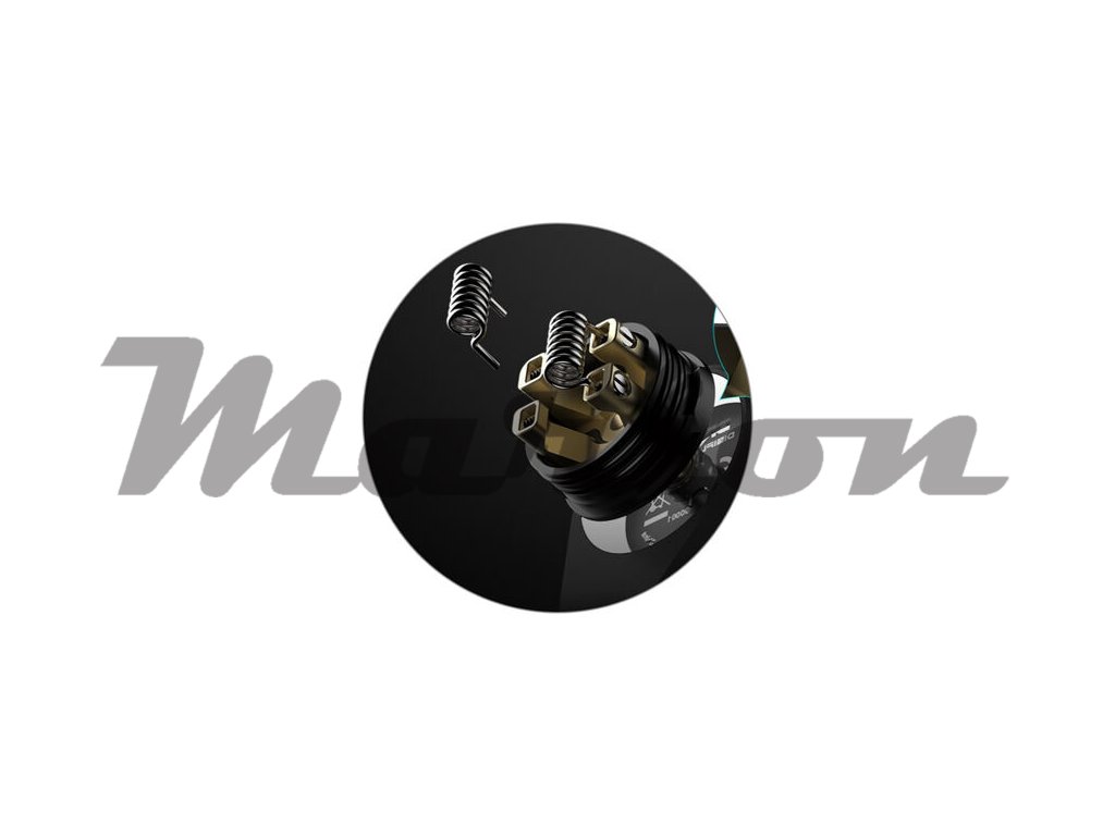 Uvnitř těla atomizéru Drop V1.5 se nachází praktická základna, do které je možné nainstalovat až dvě spirálky dle vlastního výběru. Vyvýšené sloupky navíc nabídnou dostatek prostoru pro zastřižení nožiček spirálek přímo na základně. Tato konstrukce je nesmírně intuitivní a značně usnadní celý proces instalace.