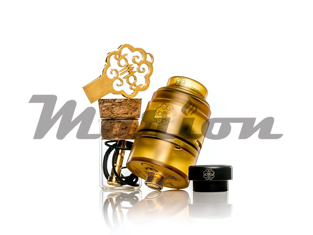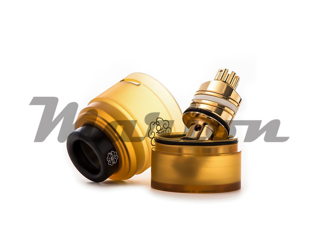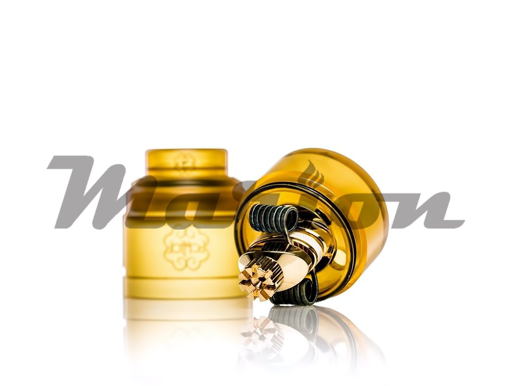 Průměr 24mm, kapacita 2ml, materiál nerezová pozlacená ocel a Ultem, BF Squonk pin, instalace až 2 spirál, horní plnění, navrženo pro DL styl vapování, závit 510.