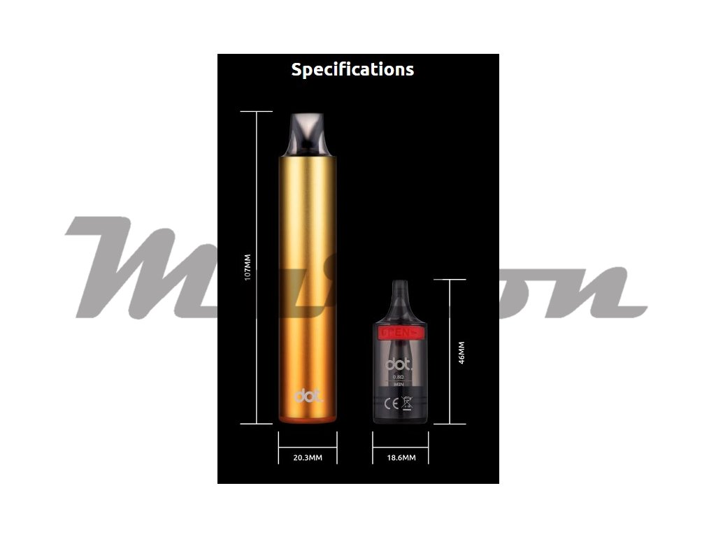 Elektronická cigareta DotMod Switch R je ideální vapovací zařízení ve stylu pera pro začátečníky, kteří hledají jednoduchost bez kompromisů v kvalitě vapingu. Tělo baterie je vyrobeno z kvalitního hliníku a disponuje vestavěným monočlánkem o kapacitě 1000mAh s rychlonabíjením typu USB-C a automatickým výkonem až 25W. Vyměnitelná cartridge (POD) je vybavena žhavící hlavou o odporu 0,8ohm s objemem nádržky 3ml. Díky magnetickému propojení s baterií lze cartridge jednoduše vyjmout a doplnit oblíbeným liquidem. Regulace přívodu vzduchu pro nastavení optimální kouřivosti se nachází ve spodní části těla baterie.