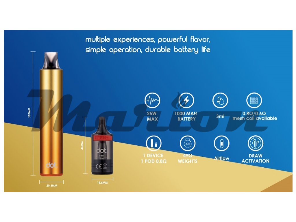 Moderní technologieDotmod Switch R Pod Kit představuje dokonalé spojení elegantního designu s pokročilými vaping technologiemi. Automatický provoz, velká kapacita baterie a prémiové zpracování činí z tohoto modelu ideální volbu pro všechny milovníky MTL vapování. Zařízení nabízí spolehlivý výkon a výjimečnou chuť v kompaktním balení. |