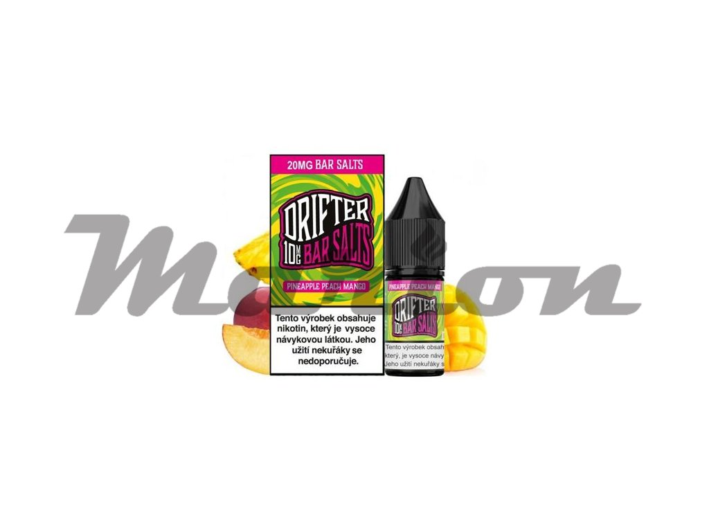 Drifter Bar Salts Pineapple Peach Mango (Ananas, broskev a mango) 10ml intenzita nikotinu 10mg tabáková nálepka Kolek Q