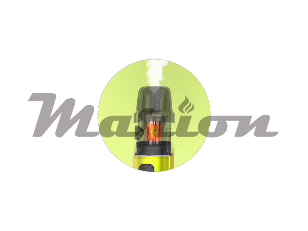 V přední části se nachází praktické ovládací tlačítko, které slouží pro zapínání a vypínání, ale také pro nastavení intenzity výkonu a pro spínání žhavení. Samozřejmostí je potom také podpora automatického spínání, pro žhavení tak nebudete tlačítko potřebovat, stačí si pouze potáhnout z náustku. Ve vrchní části najdete cartridge s objemem 2,5 ml a L-Guard technologií, která nabídne vylepšenou konstrukci s řadou těsnění. Cartridge přichází ve dvou variantách s rozdílným odporem integrovaného žhavícího tělíska. První disponuje odporem 0,7 ohm a je ideální pro vzdušnější MTL, druhá cartridge nabídne odpor 1,4 ohm a nabídne perfektně utažený potah. GeekVape Wenax H1 Pod Kit je vynikající e-cigareta pro každodenní šlukování, kterou už nepustíte z ruky.