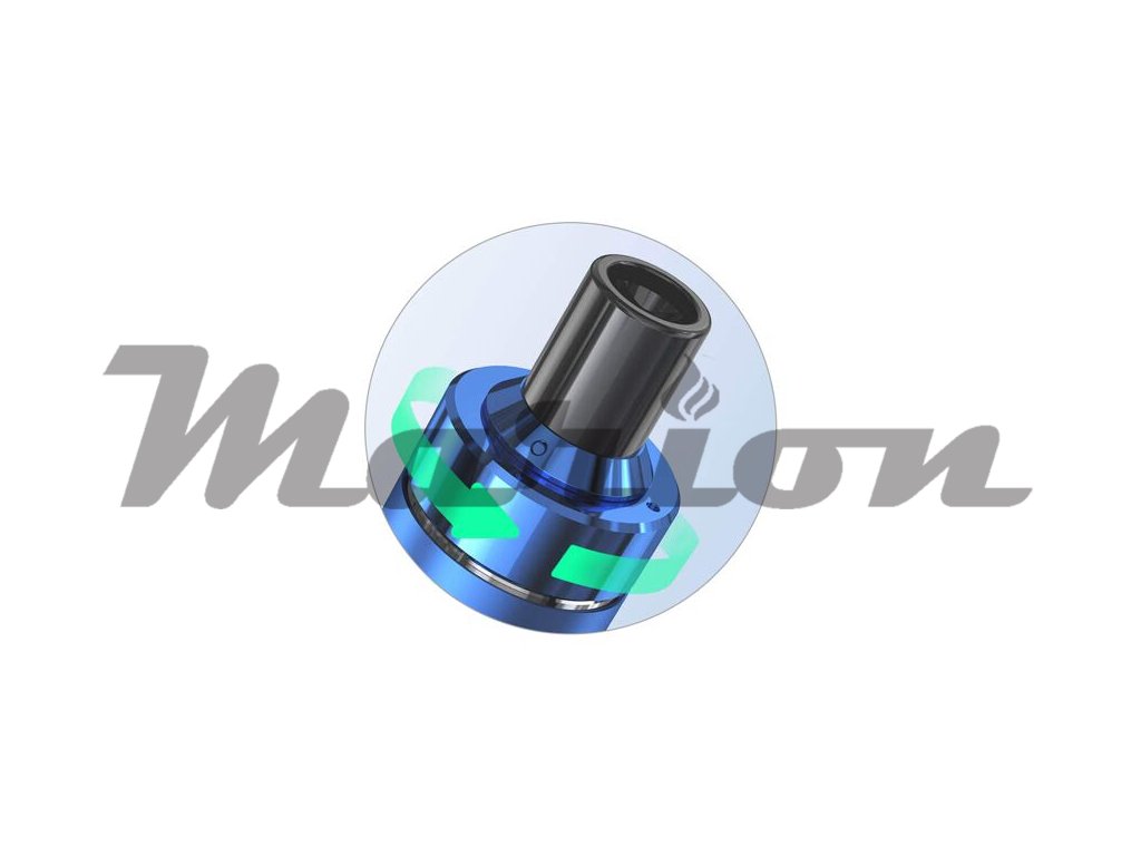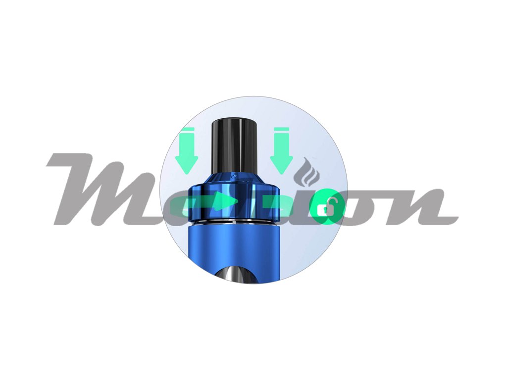 Vrchní uzávěr je opatřen speciální dětskou pojistkou, která zabrání nechtěnému otevření systému pro plnění v případě umístění v cestovním zavazadle, nebo nechtěnému otevření tanku dětmi. Pro zpřístupnění plnícího otvoru je nutné stlačit uzávěr dolů a následně jím otočit, díky této pojistce budete mít váš tank neustále v bezpečí proti případnému úniku e-liquidu.