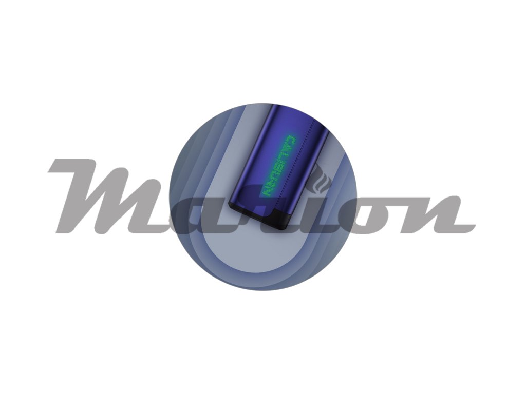 Stylový designový prvek se potom nachází ve spodní části těla. Jedná se o praktickou indikační diodu, která mění svou barvu během potahování podle aktuální úrovně nabití baterie. Podsvícené logo Caliburn je krásně čitelné i na slunci, budete tak mít hladký a neustálý přehled o stavu vaší baterie.