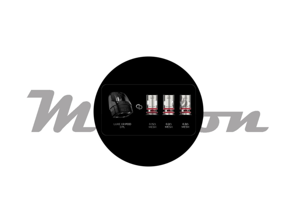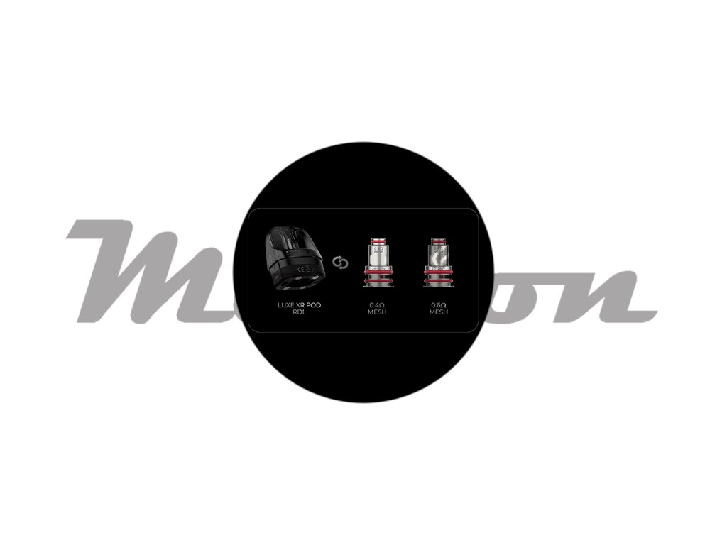 Cartridge XR Pod v základním balení je kompatibilní se žhavícími hlavami z platformy GTX. Tato platforma nabídne celou řadu různorodých odporů a typů žhavících hlav. V základním balení na vás čeká tělísko GTX Mesh s odporem 0,2 ohm a GTX Mesh s odporem 0,4 ohm. Model LUXE XR MAX je zároveň zpětně kompatibilní také s cartridgemi LUXE X s integrovanými hlavami, které se dají pořídit samostatně.