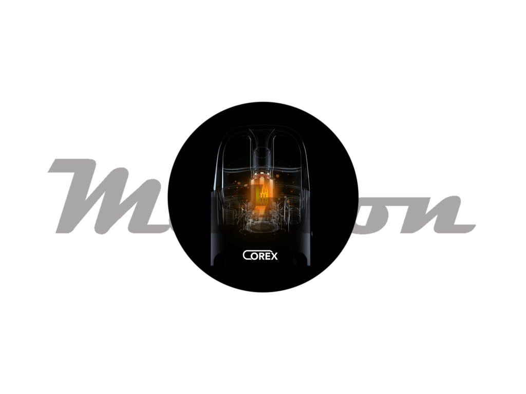 O co nejlepší chuťové podání a dlouhou životnost žhavících tělísek se postará inovativní technologie COREX, která na vás čeká v jádru zařízení. Tělíska jsou opatřena speciálně navrženým druhem pletiva a luxusní přírodní vatou pro efektivní sání e-liquidu a vyváženou chuť při každém potahu. Tělíska nabídnou také velkou odpařovací plochu pro maximální prokreslení každého e-liquidu při potahu, v zařízení LUXE XR MAX vynikne každý váš e-liquid na maximum.