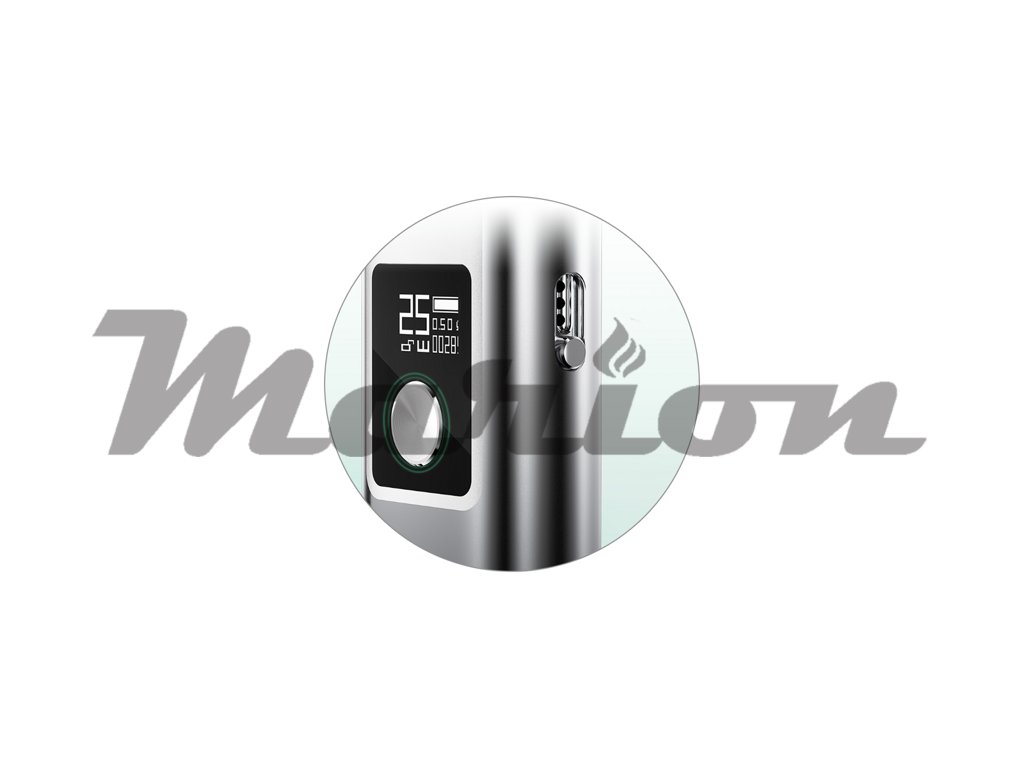 Pro chod celého zařízení budete potřebovat jedno jediné tlačítko. To se nachází na předním panelu společně s displejem. Nabídne jednoduché a intuitivní ovládání. Pomocí tlačítka si nastavujete výstupní výkon, resetujete počítadlo potahů, zamykáte zařízení pro bezpečné přenášení, nebo žhavíte. Alternativně lze pro žhavení využít také automatické spínání potahu pouhým potažením z náustku.