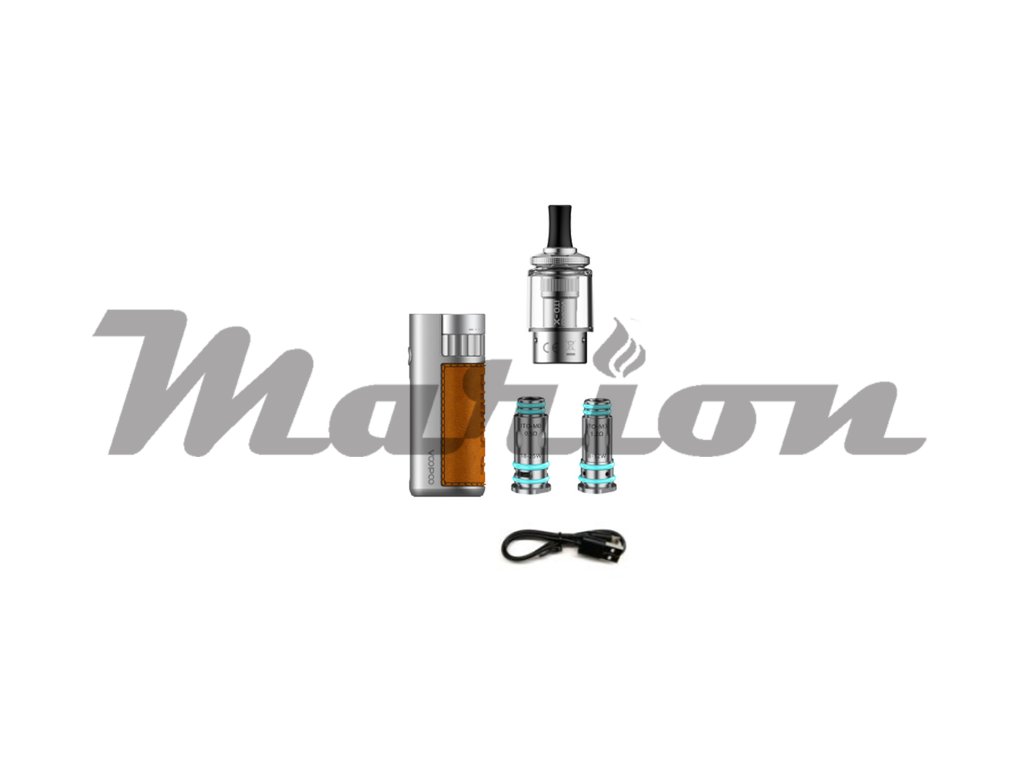 Materiál: zinková slitina + kůže + silikon (tělo e-cigarety); nerezová ocel + PCTG (cartridge)