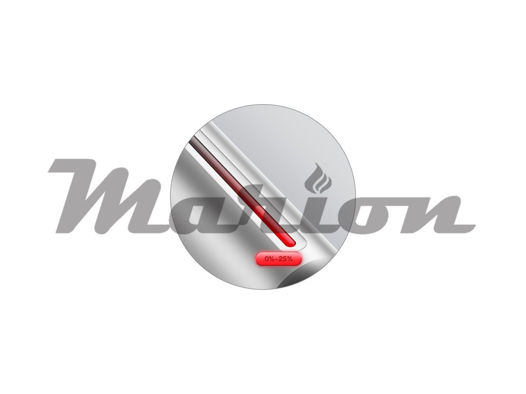 V přední části se nachází stylový proužek opatřený LED diodou, který mění barvu podle aktuálního nabití baterie. K dispozici je zelená, modrá a červená dioda. Budete tak mít neustálý přehled o tom, zda je potřeba dobíjet, nebo zda můžete stále intenzivně potahovat. Celý proužek zároveň slouží jako stylový a inovativní designový doplněk celého modelu. Rozhodně s ní budete všude na očích.