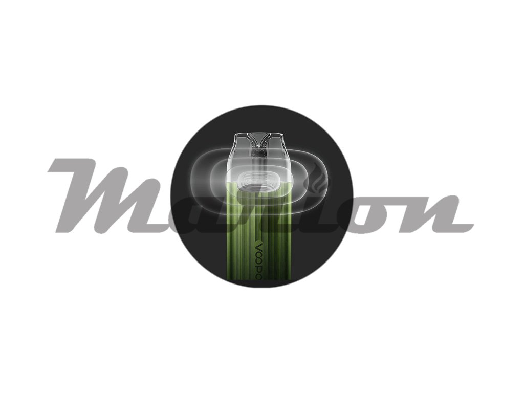 Cartridge ze série Vmate s označením V2 jsou vyrobeny z kvalitního PCTG plastu s antibakteriální ochranou, samotný náustek má 99% antibakteriální ochranu pro co nejčistší a zdravotně nezávadný provoz. Je také příjemně ergonomický, e-cigareta se proto pohodlně drží v ústech i během celodenního vapování.
