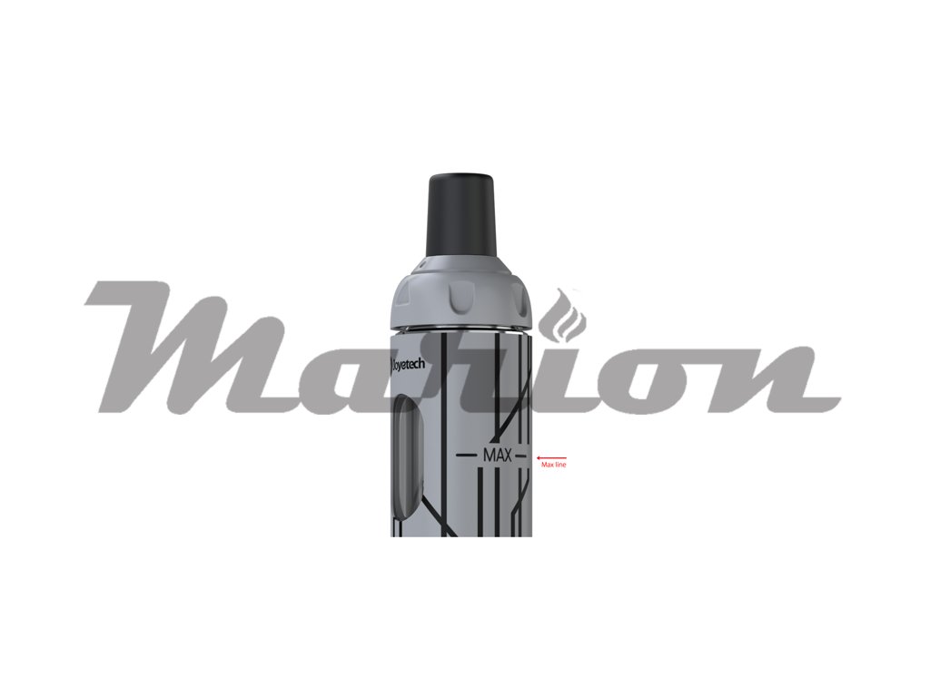 Odšroubováním vrchního uzávěru s náustkem a tělískem zpřístupníte samotný tank. Ten nabídne objem na 2 ml e-liquidu. Na boční straně tanku se nachází praktická ryska MAX, která vás upozorní na maximální hladinu e-liquidu, po kterou můžete doplňovat. Plnění je velice snadné a rychlé, hravě si s ním poradí zejména začátečníci.