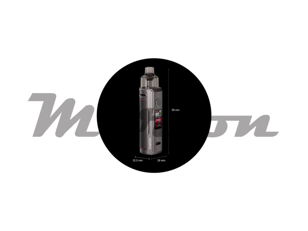Výrobce VooPoo představuje upgradovanou verzi nového modelu Drag S a přináší uživatelům nabídku ještě vyššího výstupního výkonu a výhodu v používání vlastní externí baterie. VooPoo Drag X Pod Kit je špičková elektronická cigareta, která osloví zejména příznivce přímého potahování do plic, bez problému však potěší také milovníky vzdušnějšího MTL potahu. Rozměry e-cigarety Drag X činí 95 x 32,5 x 28 mm a díky svému ergonomickému zpracování skvěle padne do každé ruky. Tělo je vyrobeno z kombinace zinkové slitiny a kůže, kterou najdete na zadním panelu. Uvnitř modelu Drag X se nachází prvotřídní čip GENE.TT který nabídne okamžitý náběh žhavení, řadu bezpečnostních prvků, přehledné uživatelské rozhraní a možnost regulace výstupního výkonu v rozmezí 5 - 80 W. VooPoo Drag X Pod přináší jednoduchou metodu spínaní žhavení stiskem žhavícího tlačítka.