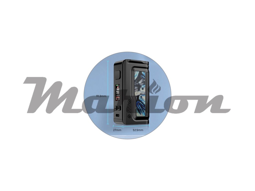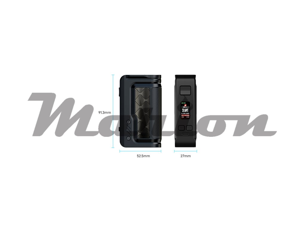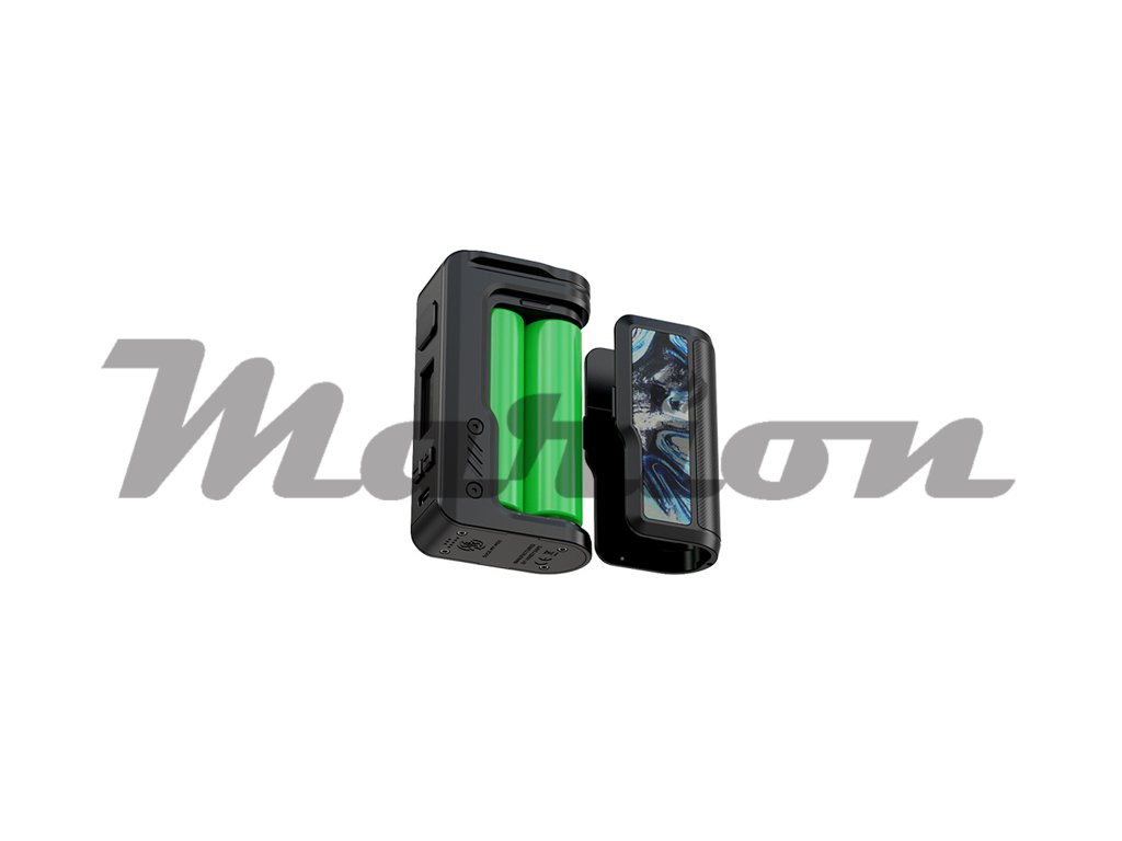 Mod pracuje se dvěma bateriemi typu 18650, které se do těla vkládají po vysunutí zadního panelu. Díky pohonu na dvě baterie se můžete těšit na nekompromisní výstupní výkon, který dosahuje až 200 W. Samozřejmostí je podpora dobíjení obou baterií přímo v modu díky portu USB-C, který se nachází na předním panelu. Lze dobíjet proudem až 1,8 A.