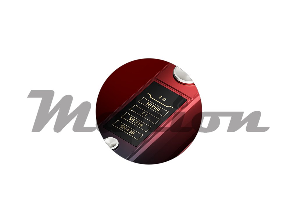 Oblíbené teplotní režimy jsou zpět. Mimo standardní režim výkonu si tak můžete na zařízení vyzkoušet jeden z teplotních režimů pro niklové (Ni200), titanové (Ti) a nerezové (SS316, SS430) spirálky. Režimy využijí zejména pokročilí uživatelé s vlastním motacím atomizérem. Nabídka výstupních režimů je nesmírně bohatá a umožňuje širokou variabilitu uživatelského nastavení.