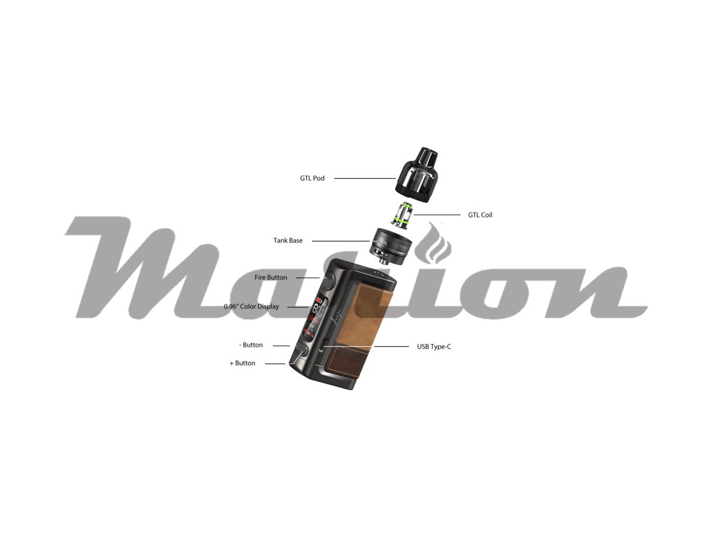 Mod nabídne také moderní a stylový design. Kovovou konstrukci zařízení doplňuje kožený potah v různých barevných variacích. Mod je tak nesmírně elegantní a hodí se jak do společnosti, tak také pro každodenní používání například v zaměstnání. Ve vrchní části modu se nachází závit typu 510, na který je v kompletním kitu našroubovaný hybridní clearomizér GTL Pod Tank s objemem 4,5 ml. Clearomizér kombinuje konstrukční výhody standardních tanků a cartridgí. Je kompatibilní s tělísky z řady Eleaf GTL, v balení najdete hned dvě. První má odpor 0,4 ohm, druhé potom odpor 0,8 ohm. Samostatně se dají pořídit také tělíska s vyšším odporem pro utažené klasické šlukování. Eleaf iStick Power 2 Kit je skutečně hrdým nástupcem již tak populárního modelu. Přesto jde ve svých kvalitách ještě dál, než jeho předchůdce.