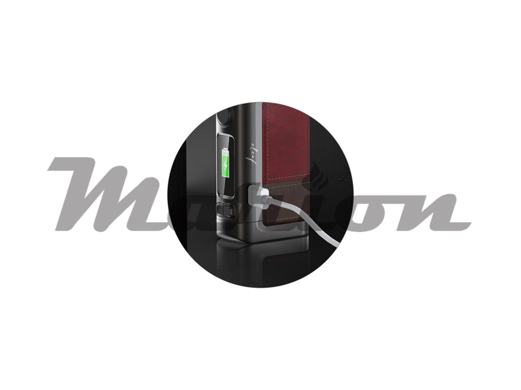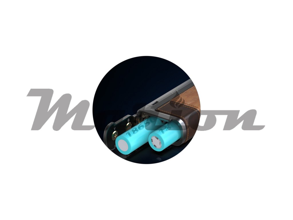 Ve spodní části se nachází slot pro dvě externí baterie typu 18650. Po vložení vlastních baterií můžete začít využívat mod naplno. Nespornou výhodou je také podpora dobíjení baterií přímo v modu. Jednoduše připojíte USB-C kabel k modu a začnete dobíjet pomocí adaptéru, nebo počítače. Díky pohonu na dvě baterie se můžete těšit na bezproblémový chod a rychlý náběh žhavení.