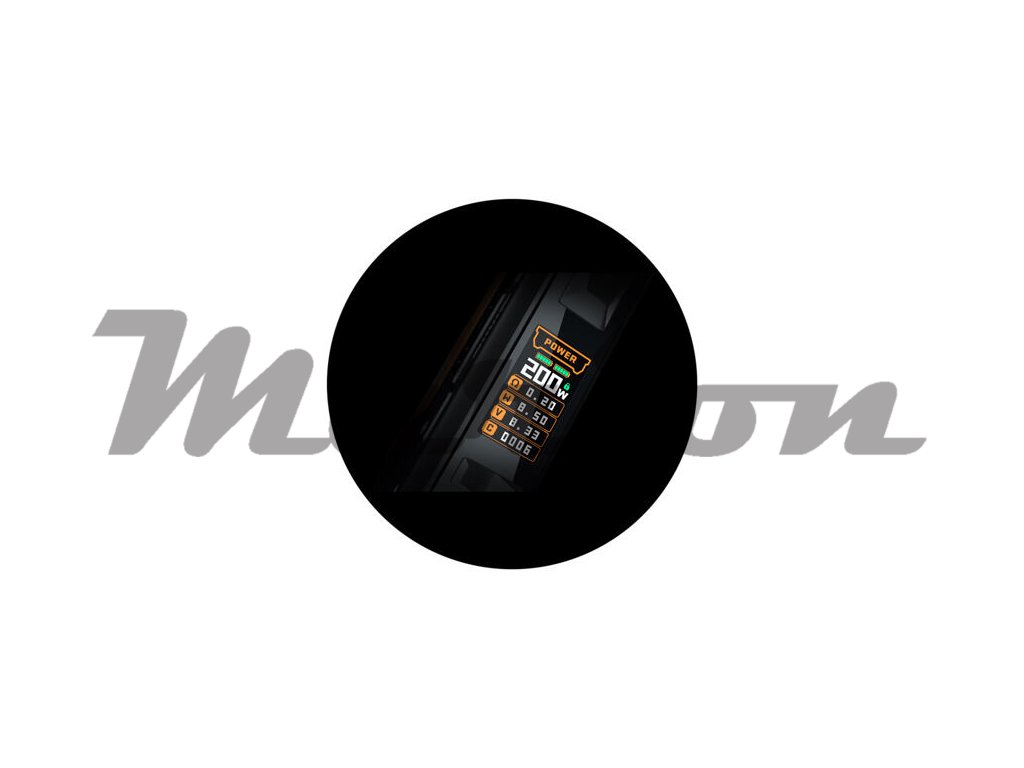 Díky pohonu na dvě baterie se můžete těšit nejenom na extrémně rychlý náběh žhavení, ale také na vysoký výstupní výkon. Ten totiž dosahuje až 200 W. Mod tak bez problému uspokojí i ty nejnáročnější vyznavače cloud chasingu a přímého potahování do plic. Výkon si můžete pohodlně regulovat pomocí regulačních tlačítek v rozpětí 5 - 200 W. Nastavení celého modu je nesmírně snadné a intuitivní.