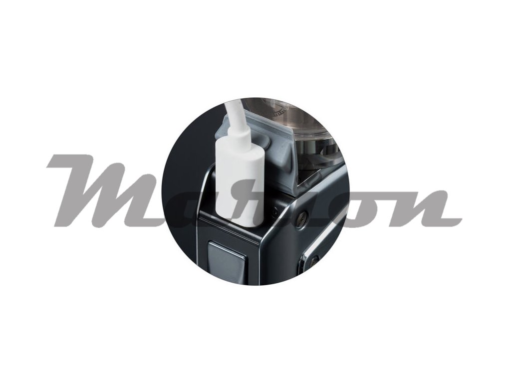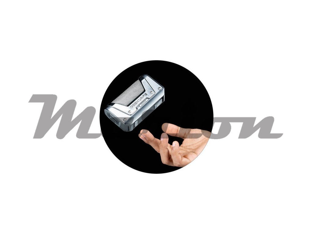 Uvnitř těla se nachází slot pro vložení baterií. Mod pracuje se dvěma bateriemi typu 18650. Tyto baterie nejsou součástí základního balení a je nutné dokoupit je samostatně. Díky pohonu na externí baterie dosáhnete vždy mimořádných výsledků při žhavení, těšit se můžete také na extrémně rychlou odezvu žhavení a stabilní chod zařízení. Externí baterie navíc můžete pohodlně dobíjet přímo v modu díky USB-C portu na těle zařízení.