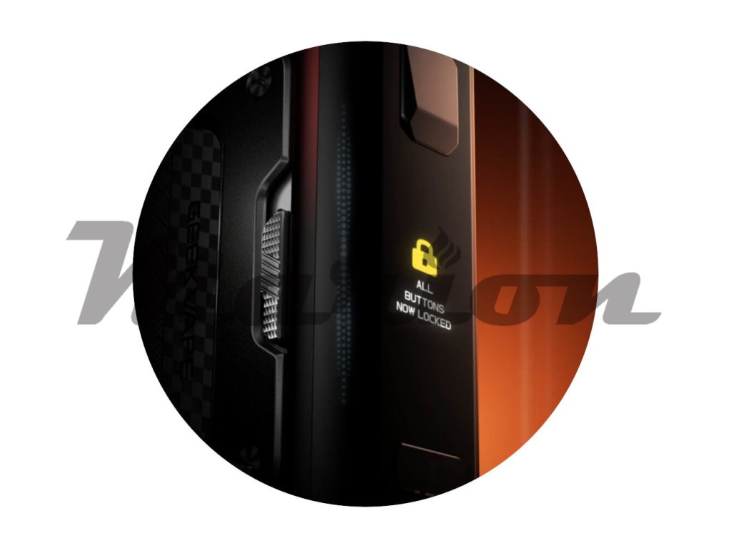Jednoduchý mechanický posuvník A-Lock slouží jako rychlá a efektivní ochrana před náhodným spuštěním žhavení nebo přenastavení hodnot, když jej přenášíte například v kapse. Zároveň funguje jako bezpečnostní pojistka proti odemčení modu dětmi. Díky zdrsněnému povrchu a strategickému umístění v boční části modu je možná pohotová aktivace a deaktivace jednou rukou.