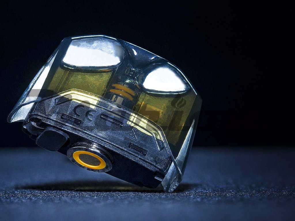 Propracovaná Pod Cartridge Samostatnou kapitolou je potom lehce vyměnitelná Pod Cartridge, která disponuje opravdu velkou kapacitou pro Váš e-liquid, a to rovných 3,5 ml. Plnění Cartridge je velmi jednoduché a probíhá otvorem, který se ukrývá ve spodní části Cartridge, který je opatřen silikonovým uzávěrem. |