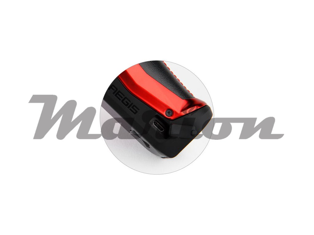 Samozřejmostí je také potom zvýšená ochrana proti prachu, mod se tedy skvěle hodí uživatelům, kteří pracují v prašném prostředí, nebo rádi cestují do přírody. V neposlední řadě se zde setkáte se zvýšenou nárazuvzdorností, nemusíte se tedy obávat, že vám mod přestane fungovat, pokud například vypadne z kapsy. Jedná se tak o naprosto perfektního pomocníka pro vyznavače outdoorových aktivit a aktivního životního stylu. Novinkou je potom přítomnost slotu pro externí baterii. Tento slot se nachází ve spodní části modu. Mod GeekVape Aegis Solo pracuje s jednou baterií typu 18650, díky které si budete moci uživat dlouhé hodiny nerušeného vapování a zároveň vysoký výstupní výkon, jež dosahuje až 100 W. V případě potřeby dobití jednoduše odklopíte silikonovou krytku u USB portu a baterii si pohodlně dobijete přímo v modu. Baterie 18650 není součástí základního balení a je nutné dokoupit ji k modu samostatně. Mod podporuje dobíjení proudem až 1,5 A, při zvolení kompatibilního adaptéru tak budete mít dobito neuvěřitelně rychle.