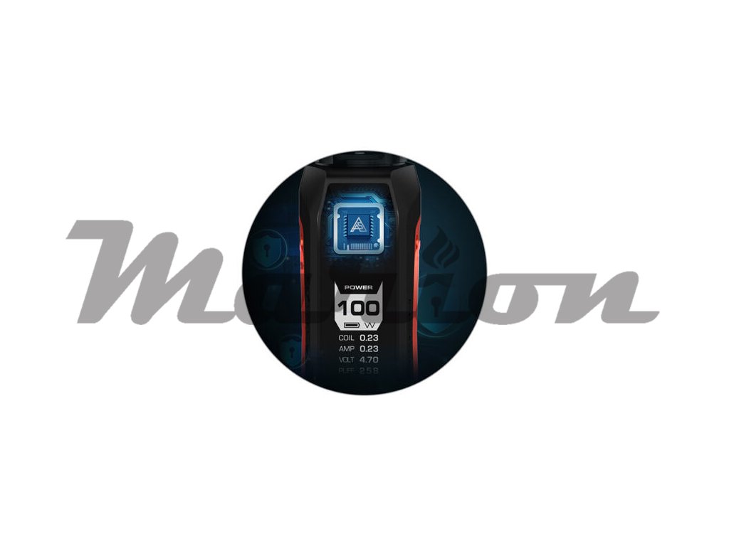 Uvnitř těla se nachází prvotřídní čip AS-100, který zajistí bezproblémové fungování a extrémně rychlý náběh žhavení. Ten se zastavil na 9 ms. Mimo tyto prvky nabídne také celou řadu bezpečnostních ochran, mezi nimiž nechybí ochrana proti zkratu, nebo proti přehřátí, ale také ochrana proti přebití a podbití baterie. Samozřejmostí je potom přítomnost pojistky proti nadměrně dlouhému potahu. Čip AS-100 zajistí vysoký výkon a stabilní fungování celého modu, díky čemuž si ho velice rychle oblíbíte.