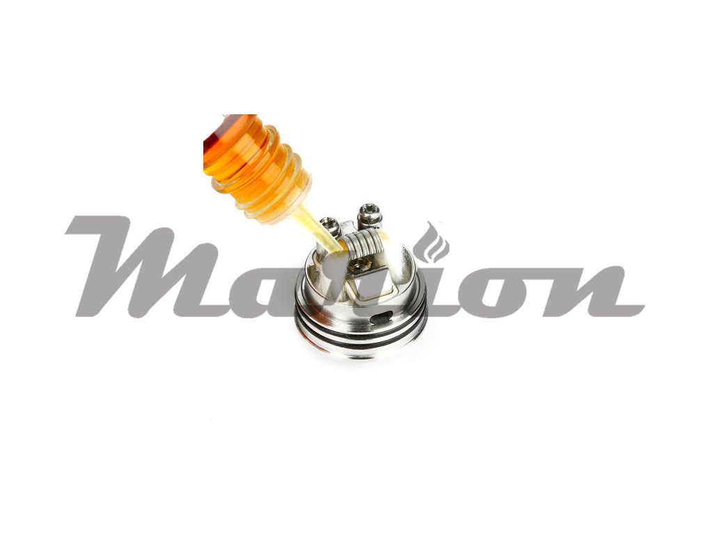 V samotném těle atomizéru naleznete praktickou základnu se dvěma sloupky. Tyto sloupky jsou opatřeny jednoduchými šroubky, které slouží k uchycení jedné spirálky. Osazení bez problému zvládne také začátečník a nezabere déle než pár minut. Zamezení úniku e-liquidu bylo dosaženo pomocí vrchního systému airflow. Ten nabídne celou řadu otvorů s různými průměry pro detailní nastavení přísunu vzduchu. Uvnitř atomizéru se nachází cirkulační 3D systém přísunu vzduchu, díky čemuž dosáhnete vždy naprosto výjimečné chuti e-liquidu. Jelikož se jedná o RDA atomizér, bude nutné e-liquid dokapávat ke spirálkám ručně. Nicméně v základním balení se nachází také squonk pin, který lze použít v případě osazení squonk modu. Poté můžete dopravovat e-liquid k vatě v atomizéru pomocí squonk modu.
