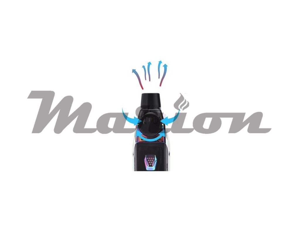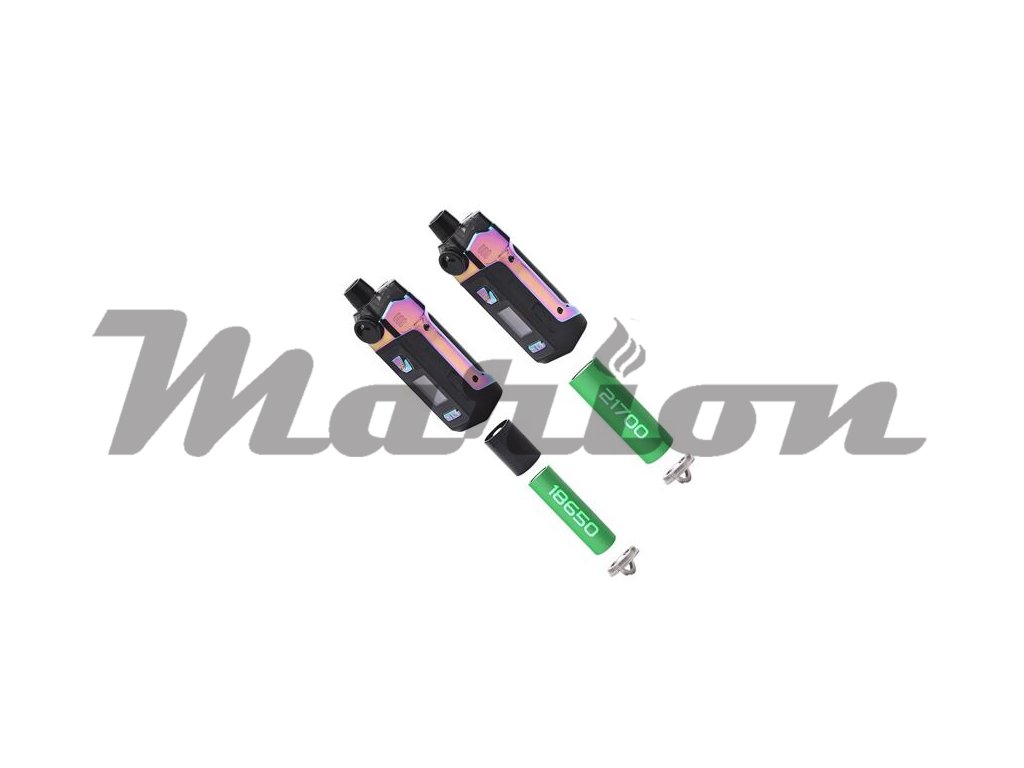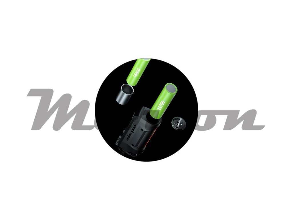 Uvnitř těla se nachází slot pro externí baterii typu 21700. Můžete použít také baterii typu 18650 s přiloženým adaptérem v balení. Díky pohonu na vlastní externí baterii si tak můžete sami zvolit vhodnou a odpovídající kapacitu a užívat zařízení dle vlastní potřeby. Samozřejmostí je potom podpora rychlého dobíjení baterie přímo v e-cigaretě díky portu USB-C.