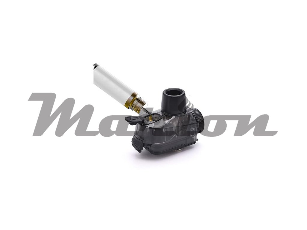 Ve vrchní části se nachází cartridge, která nabídne obrovský objem na e-liquid. Lze do ní doplnit až 6 ml e-liquidu. S touto obrovskou kapacitou si cartridge bez doplňování poradí s mnoha hodinami intenzivního používání. V případě potřeby vás potěší přítomnost vrchního systému plnění, kdy postačí pouze odklopit silikonovou záslepku a během pár vteřin doplnit e-liquid zpět.