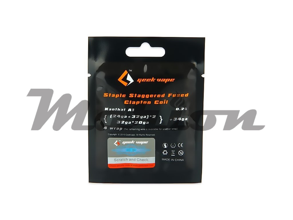 Již hotové předmotané spirálky Fused Clapton od výrobce GeekVape, jsou konstrukčně vhodné pro všechny druhy vapování. Provedení Clapton pak zaručuje produkci velkého množství páry, díky větší odpařovací ploše. Spirálky GeekVape - Fused Clapton jsou vyrobeny z odporového drátu Kanthal A1 a nichromu Ni80. Vnitřní dvojitý kanthalový drát pak zaručuje delší životnost spirálky. Celkový odpor jedné spirálky je pak 0,9 Ω.